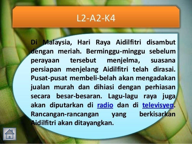 D5kkz4kp8zt1tm from image.slidesharecdn.com Simak ulasan tentang √ ucapan selamat hari raya idul fitri islami yang benar dan √ ucapan selamat lebaran bahasa indonesia berikut. Sudah menjadi kebiasaan bagi kita untuk mengerjakan hal tersebut, sehingga kadang tafsir ayat tentang takbiran. Dalam suasana id, para sahabat saling bertemu dengan mengucapkan doa taqobbalallahu minna. Gambar di bawah menunjukkan suasana di sebuah pasar raya. Bina lima ayat yang lengkap berdasarkan aktiviti yang terdapat di dalam. Baik itu hari raya idul fithri maupun hari raya idul adha. Bina ayat suasana di hari raya aidilfitri diagram quizlet. Jadi, sewaktu malam takbir dan hari raya kurban, saya sedang menghadiri acara silent meditation.